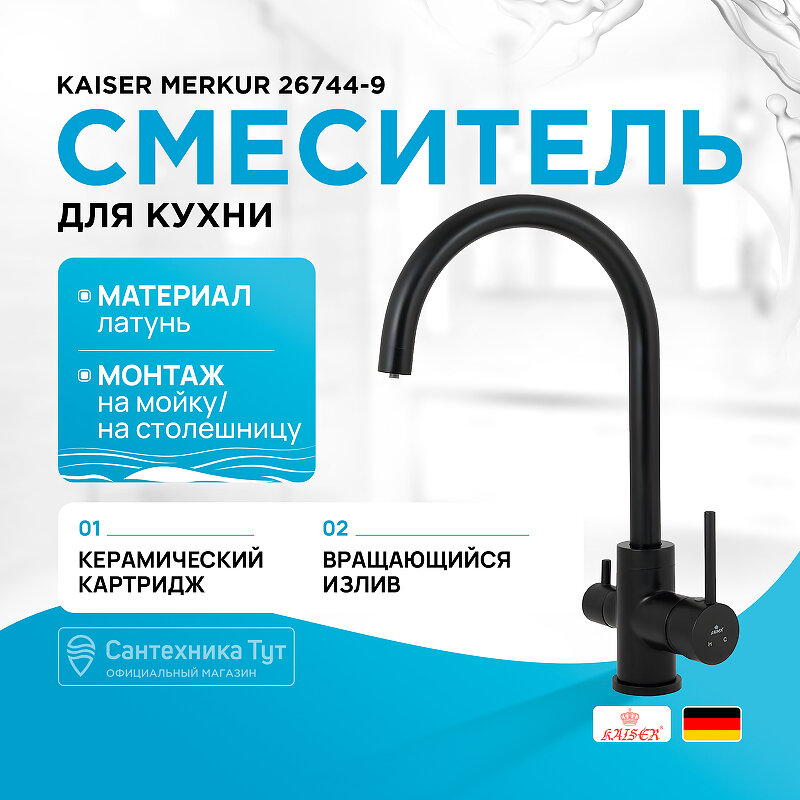 Смеситель Kaiser Merkur 26744-9 для кухонной мойки, черный