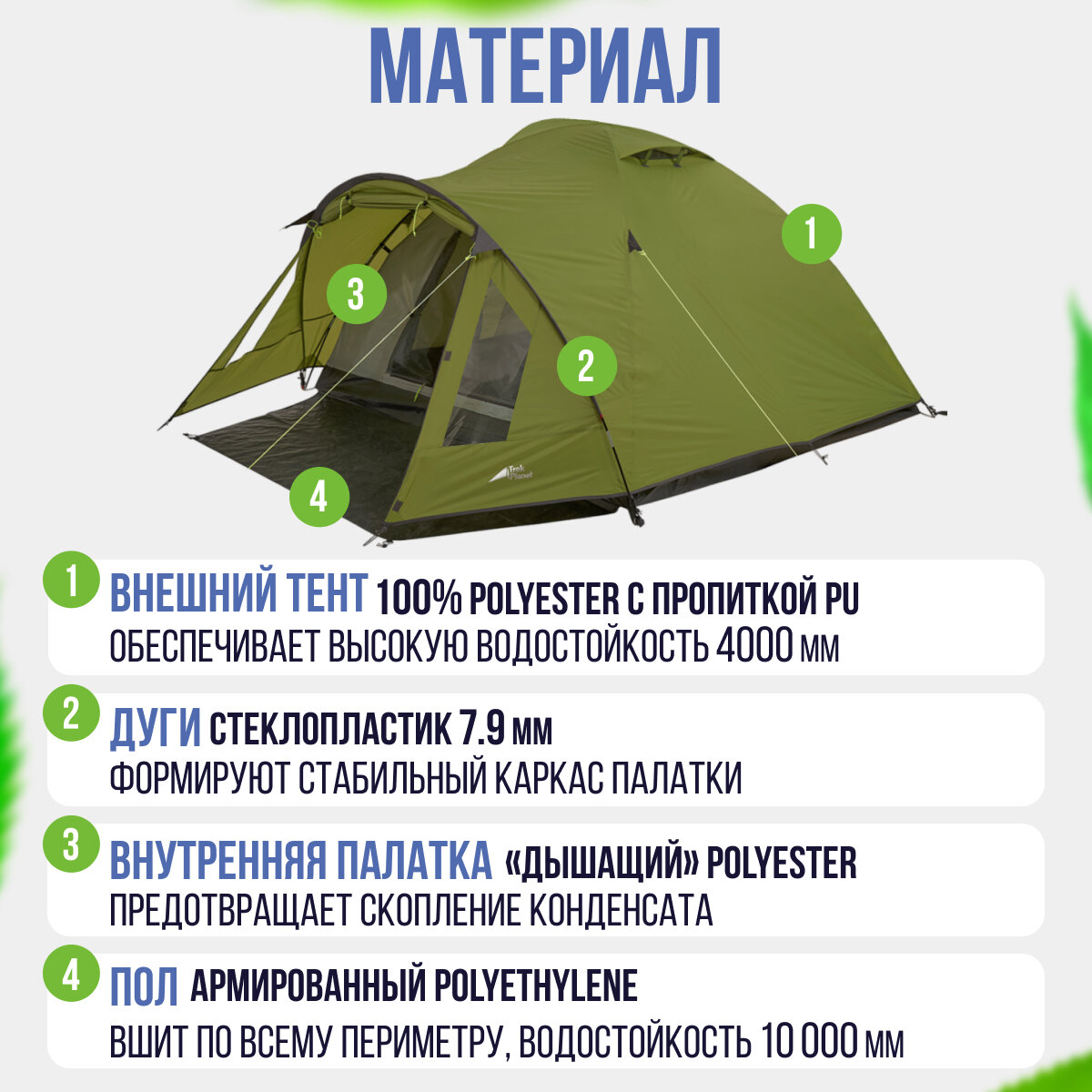 | Водостойкость тента | 4000 мм в.ст. |