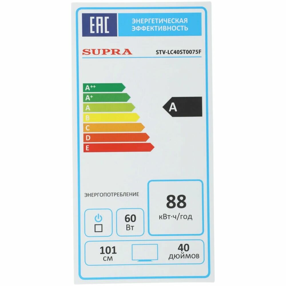 Телевизор LED Supra 40" STV-LC40ST0075F Smart черный/FULL HD/DVB-T/50Hz/DVB-T2/DVB-C/USB/WiFi (RUS)
