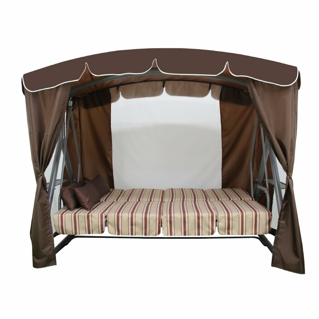 Качели садовые 4-х местные Ольса Шатер ткань панама каркас коричневый, ткань полоска бежево-коричневная