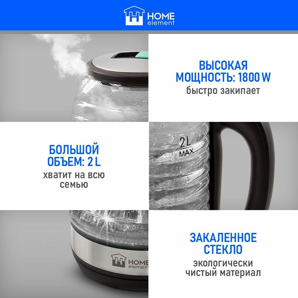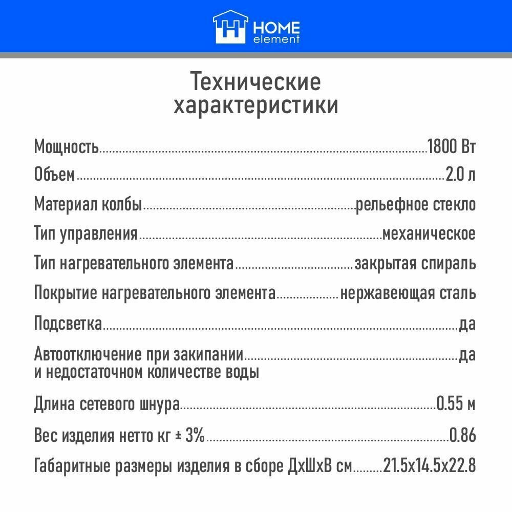Чайники от HOME ELEMENT очень быстро расхватали, реально самый достойный вариант среди бюджетных. Хорошо выглядит, два литра вместительности. Нержавеющая сталь и закрытая спираль внутри, для меня этот момент был важен. Есть индикатор уровня воды и удобный длинный кабель, для подставки. На постоянной основе у нас дома используется, все прекрасно))