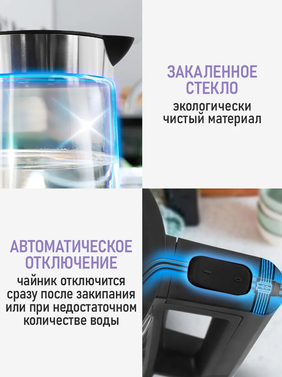 Купить Чайник электрический стеклянный с подсветкой 1.8 л