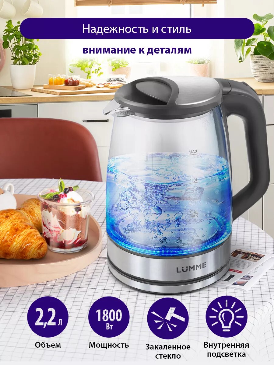Чайник стеклянный с подсветкой 2.2 л интересное: