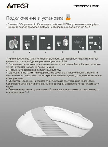 Мышь беспроводная A4Tech Fstyler FG35 silver/white (USB, оптическая, 2000dpi, 4but) (FG35 SILVER)