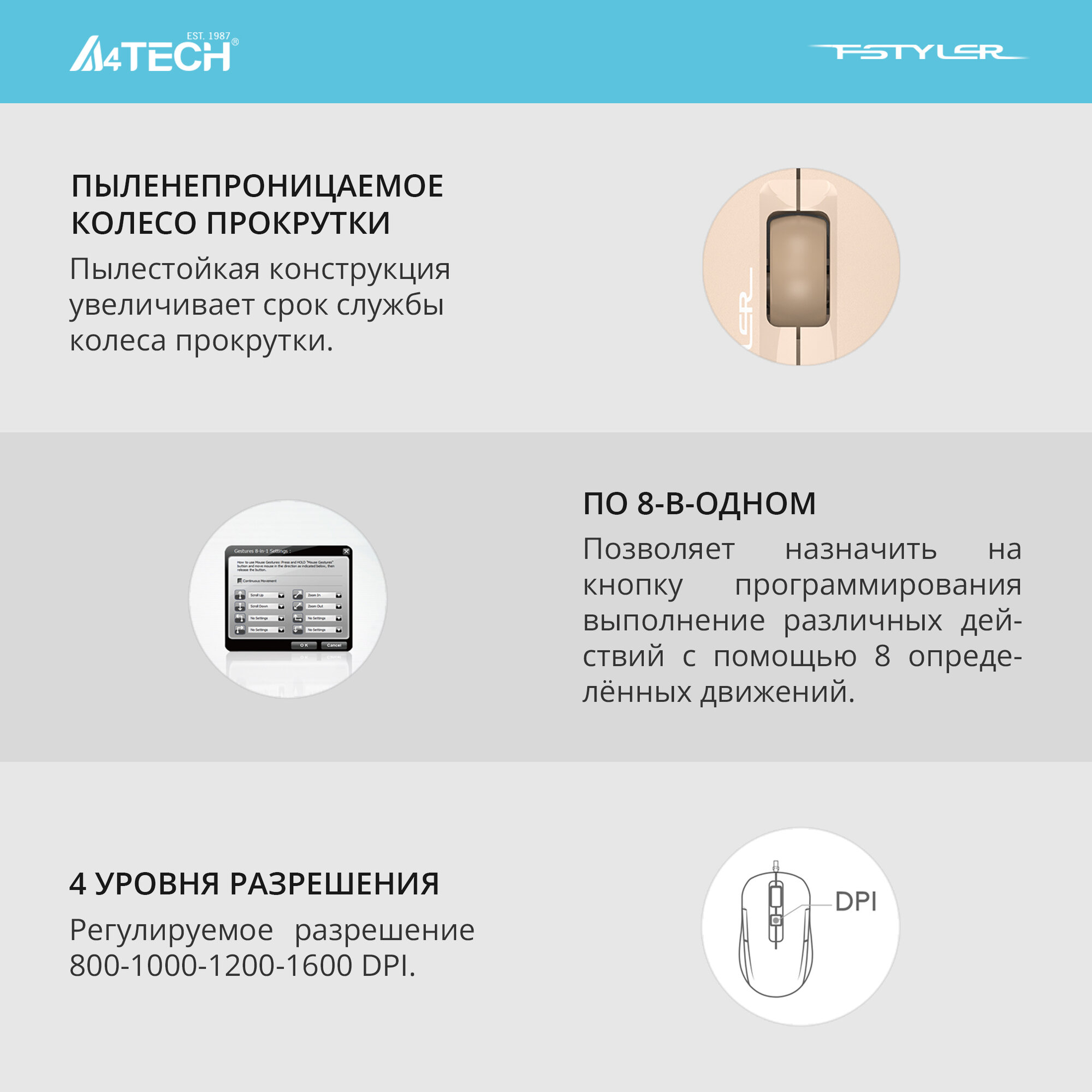 Купить Мышь A4Tech Fstyler FM26, бежевый/коричневый (fm26 usb (cafe latte))