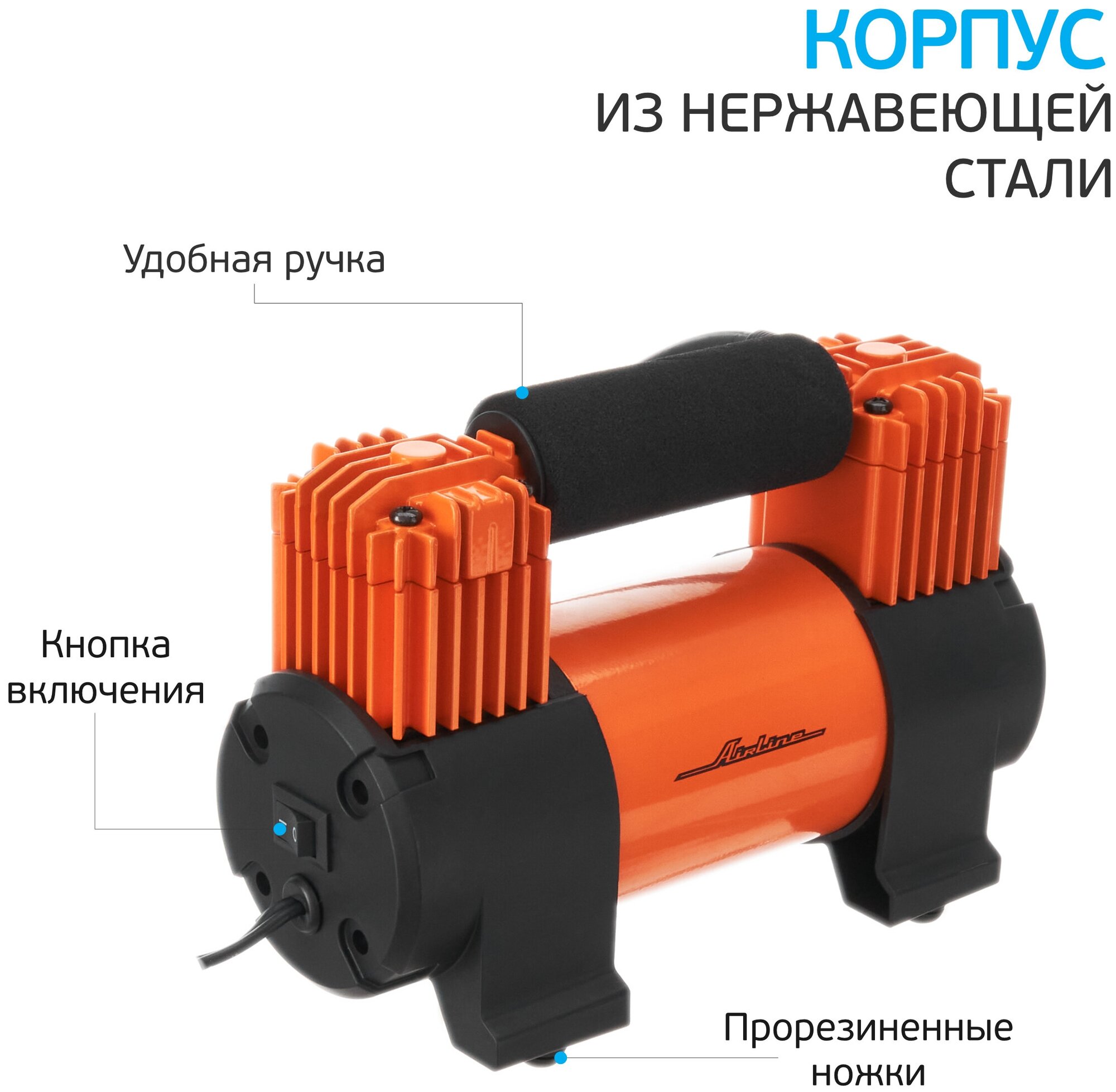 Компрессор X6 Двухпоршневой (70л/Мин. 10 Атм. От Акб. Серия Standard) AIRLINE арт. CA-070-17S