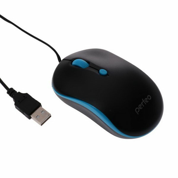 Мышь PERFEO PF-A4510 MOUNT проводная, оптическая, черный/голубой