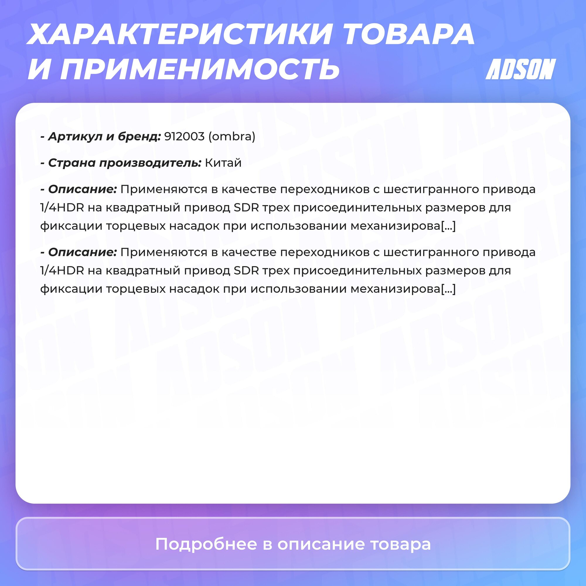 Набор Адаптеров С Hdr 1/4 На Sdr 1/4, 3/8, 1/2 Ombra 912003 OMBRA арт. 912003