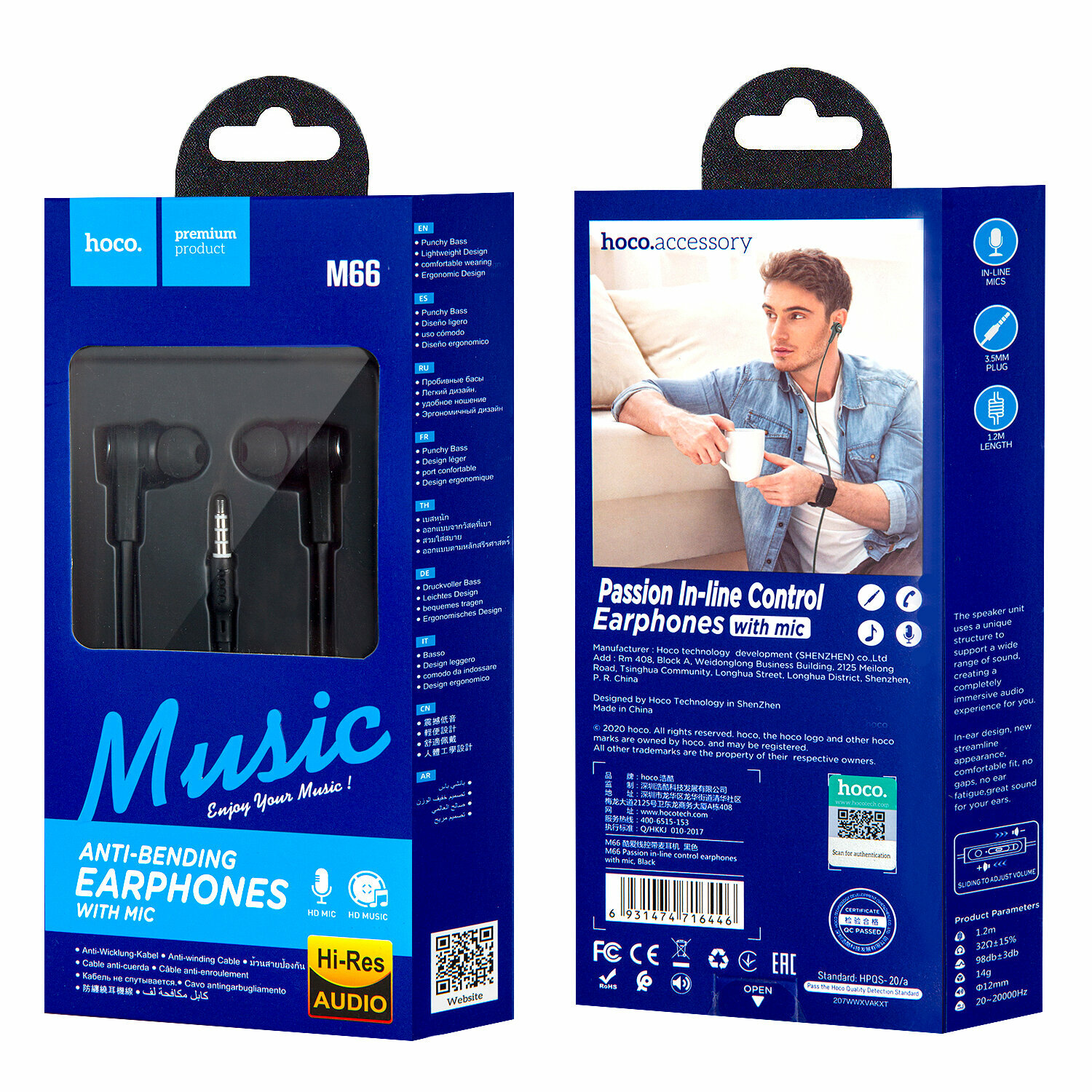 Наушники внутриканальные HOCO M66, Passion, Jack 3.5мм, 1.2 м, цвет: чёрный