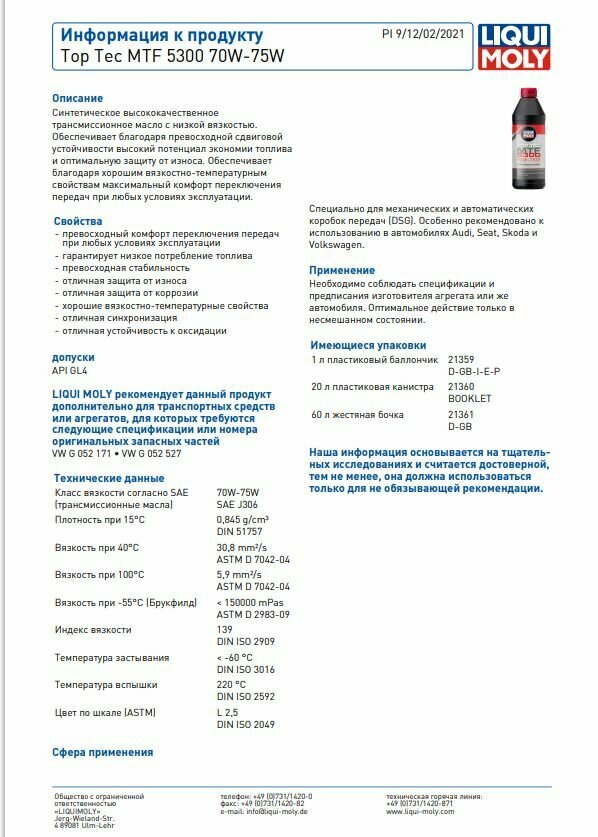 Ниже Вы можете прочитать отзывы на Масло Трансмиссионное Liqui Moly Top Tec Mtf 5300 70W75 1Л Api: Gl-4 Vw: G 052 171/G 052 527 LIQUI MOLY арт. 21359, ознакомится с подробными характеристиками, посмотреть интересные обзоры и фотографии на Масло Трансмиссионное Liqui Moly Top Tec Mtf 5300 70W75 1Л Api: Gl-4 Vw: G 052 171/G 052 527 LIQUI MOLY арт. 21359.