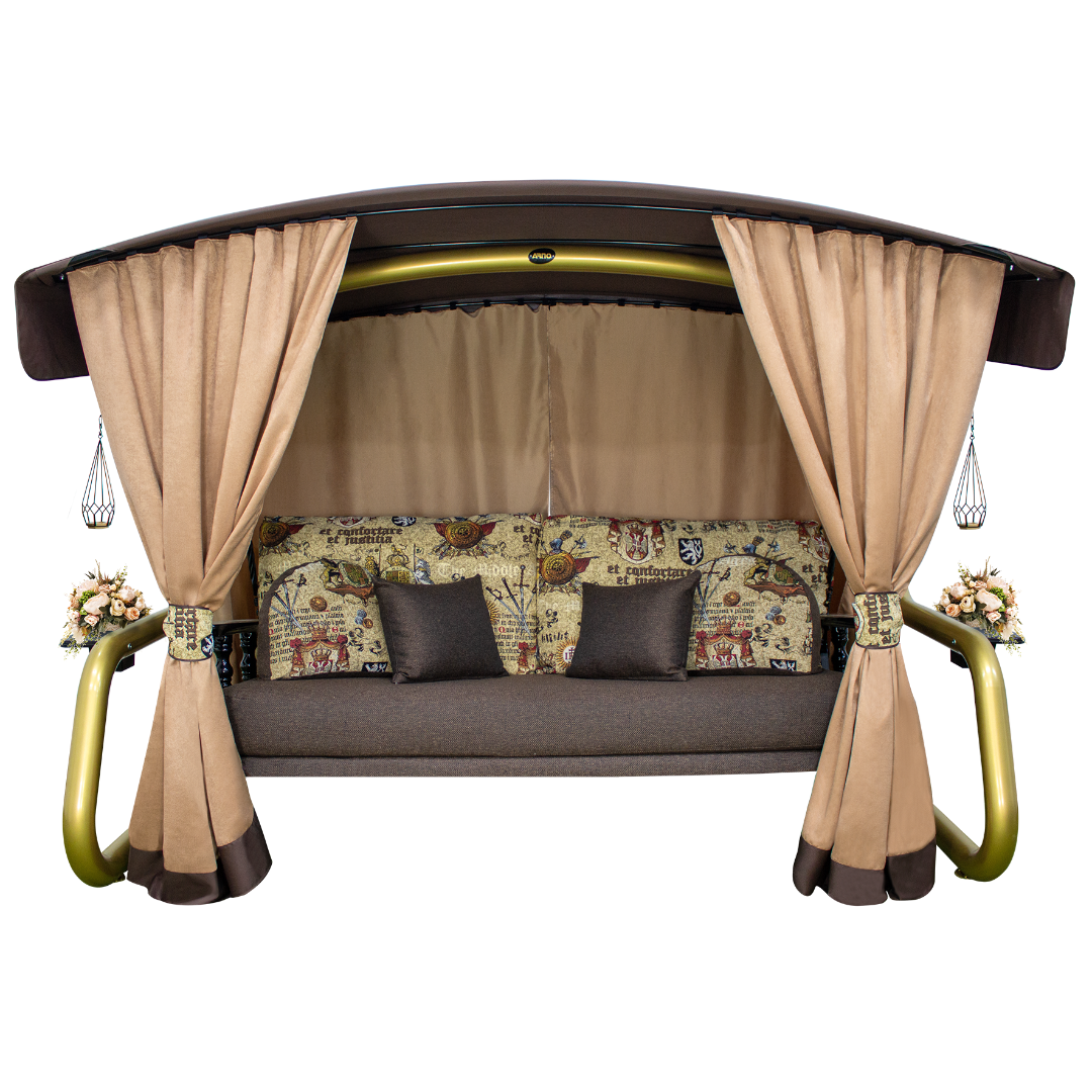 Качели садовые 4-х местные Ольса Шатер ткань панама каркас коричневый, ткань полоска бежево-коричневная