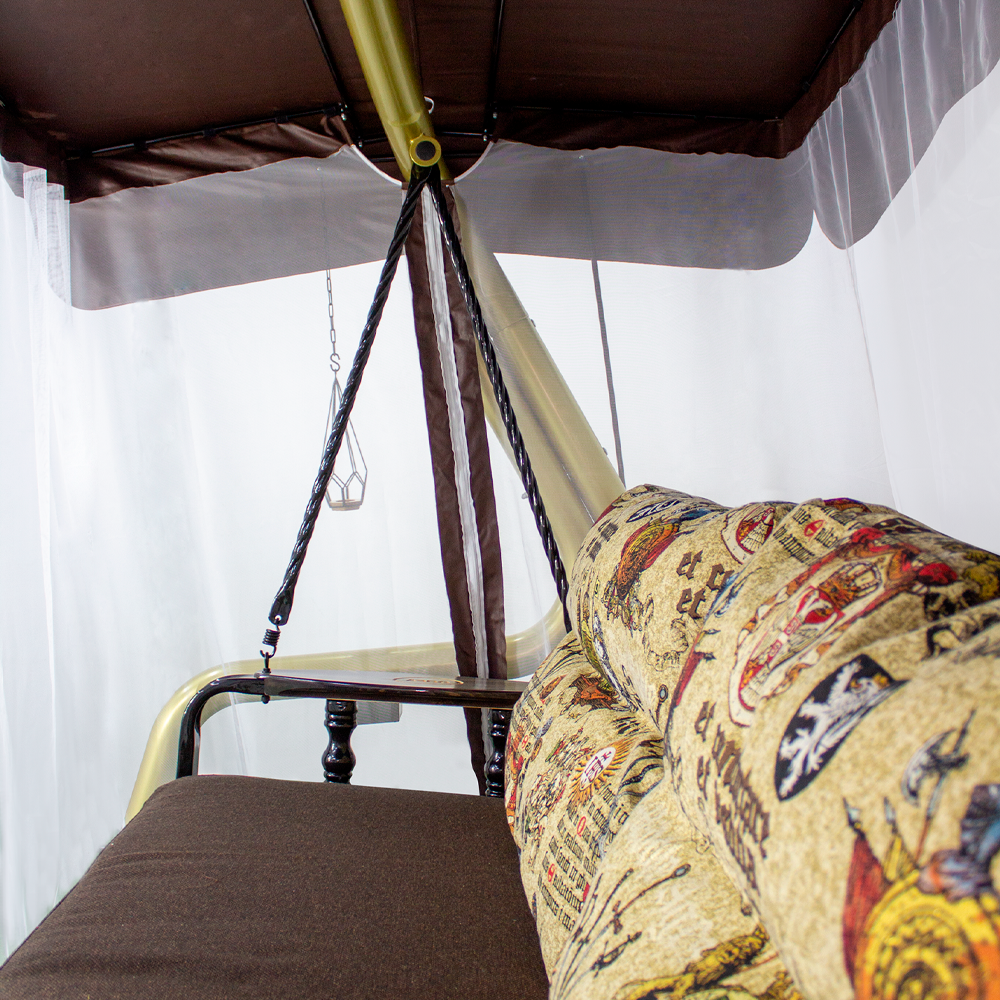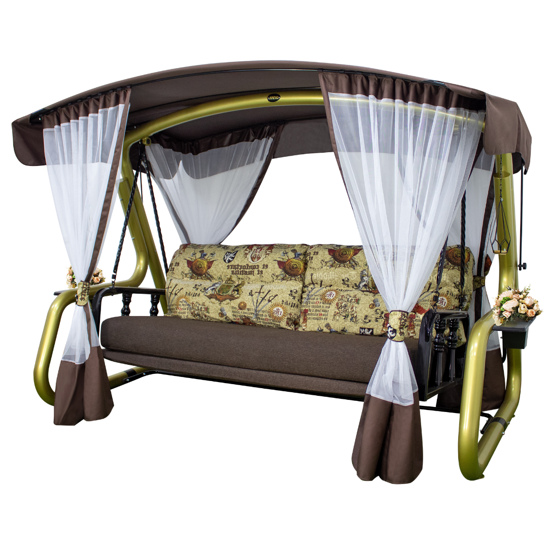 Садовые качели эгоист для дачи уличные 4-местные подвесные с тентом и москитной сеткой золотистый интересное: