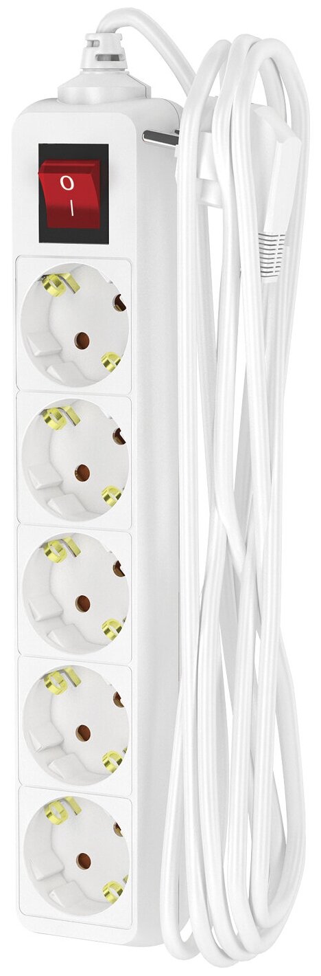 Удлинитель сетевой "фотон" 16-55ES Для офиса 5м, 16А, 5 розеток с заземлением, с выключением, белый