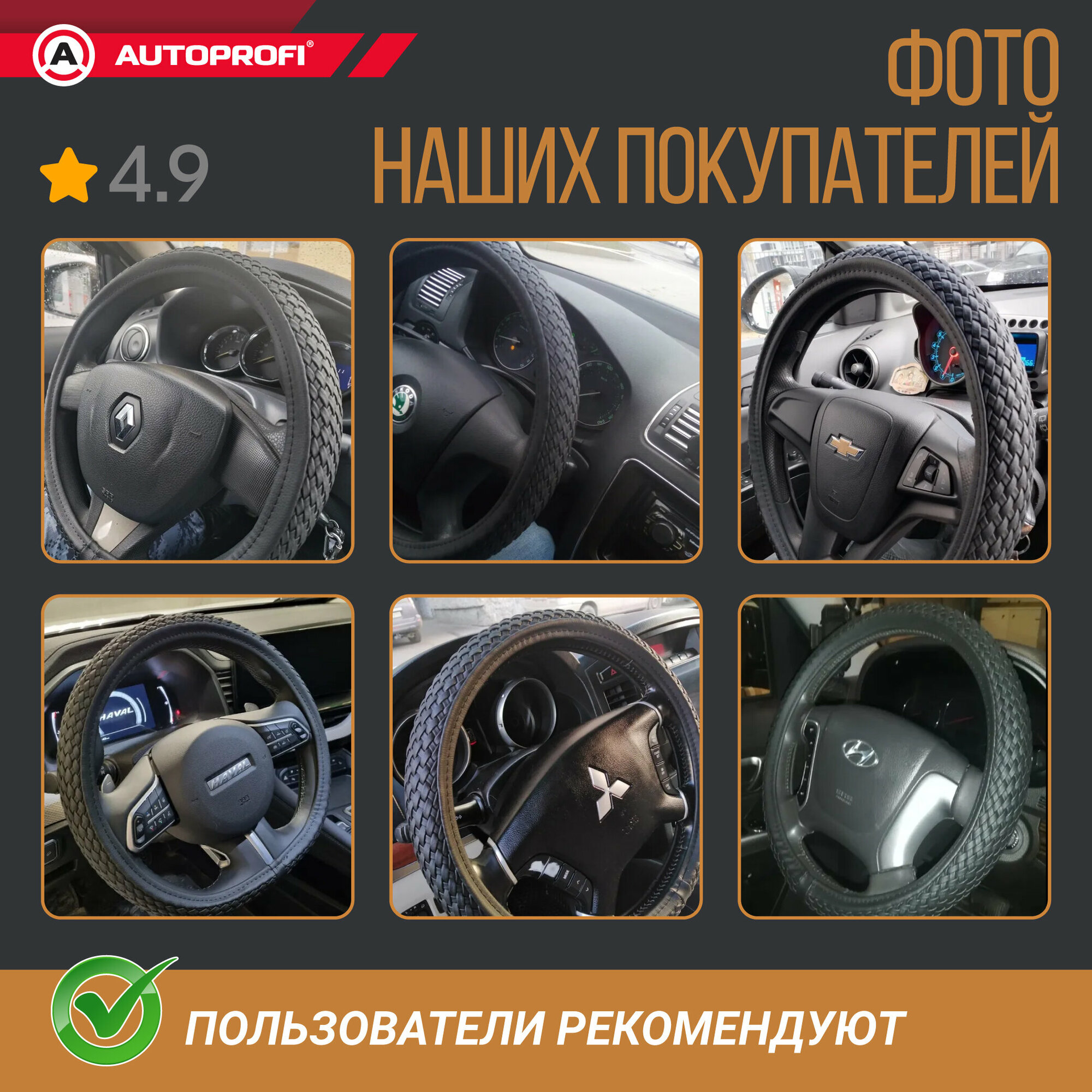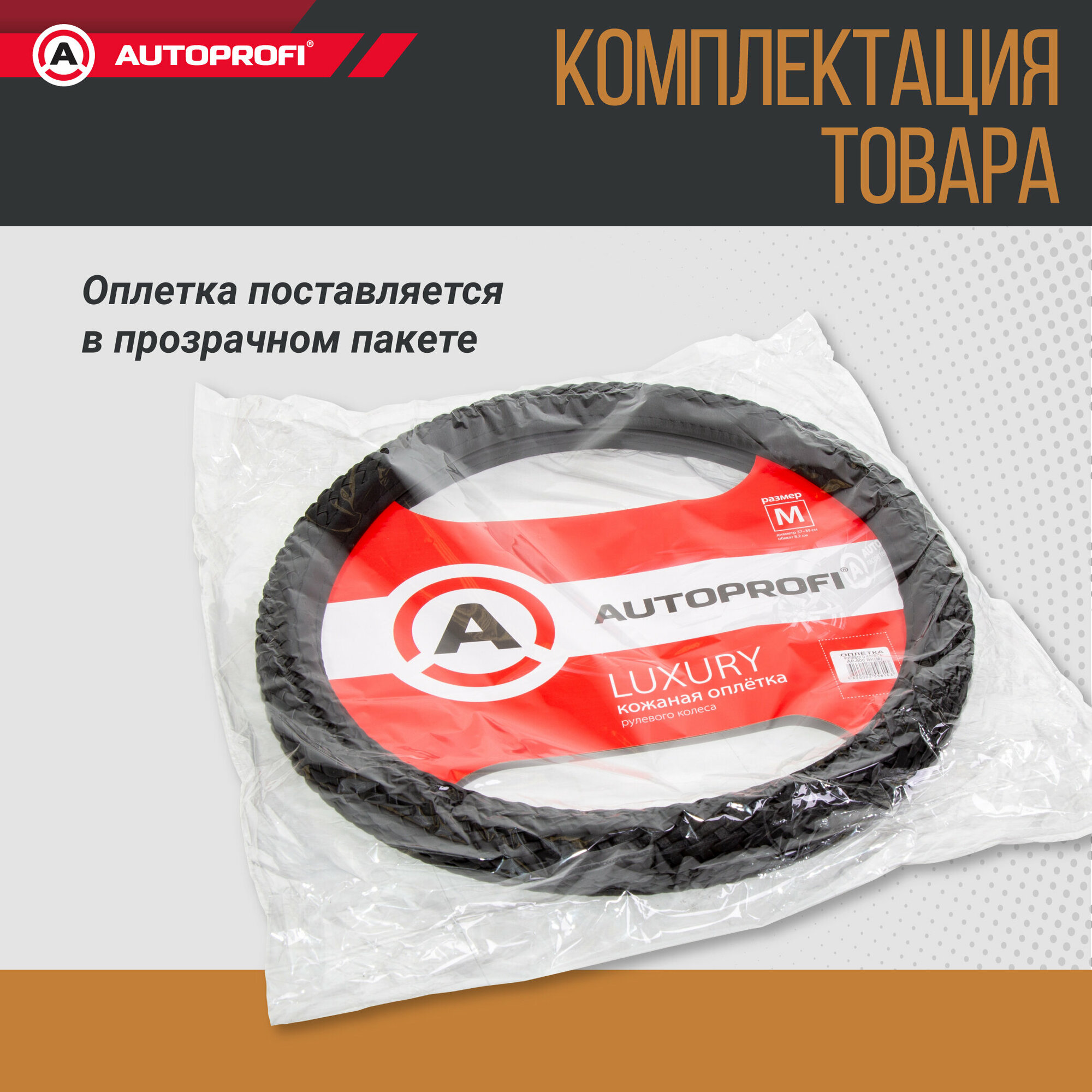 Оплетка на руль AUTOPROFI M 38см LUXURY, экокожа, полностью плетеная, черная
