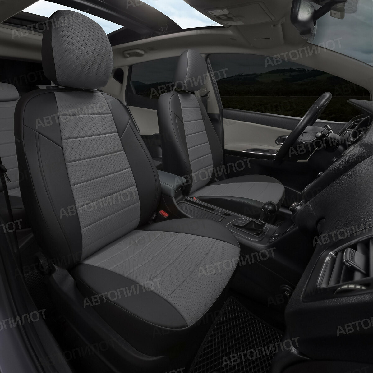 Купить Комплект чехлов Автопилот Экокожа Mitsubishi Outlander I с 03-07г. Черный + Серый