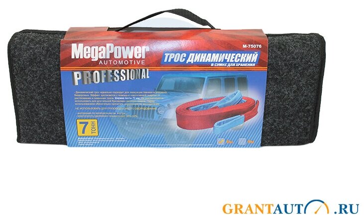 Трос Буксировочный Динамический M-75076 7Т 6М, Лента (Без Крюков) В Сумке Megapower, Шт MEGAPOWER Automotive арт. M-75076