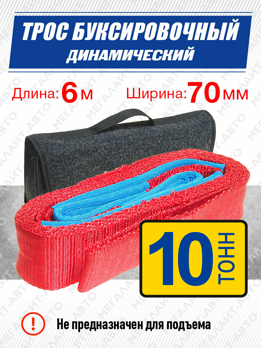 Трос динамический буксировочный M-75106 10000кг длина 6м, ленточный (без крюков) в сумке MEGAPOWER