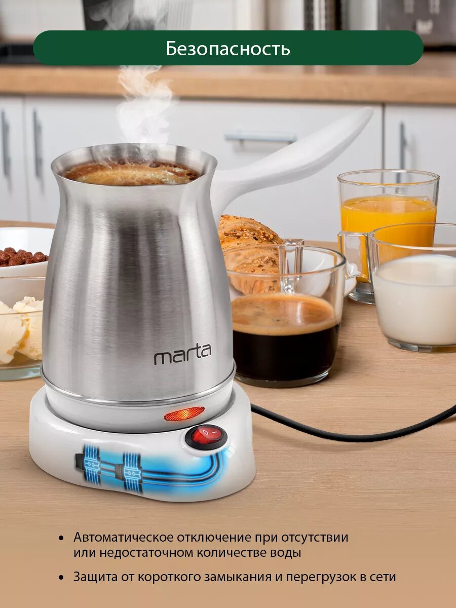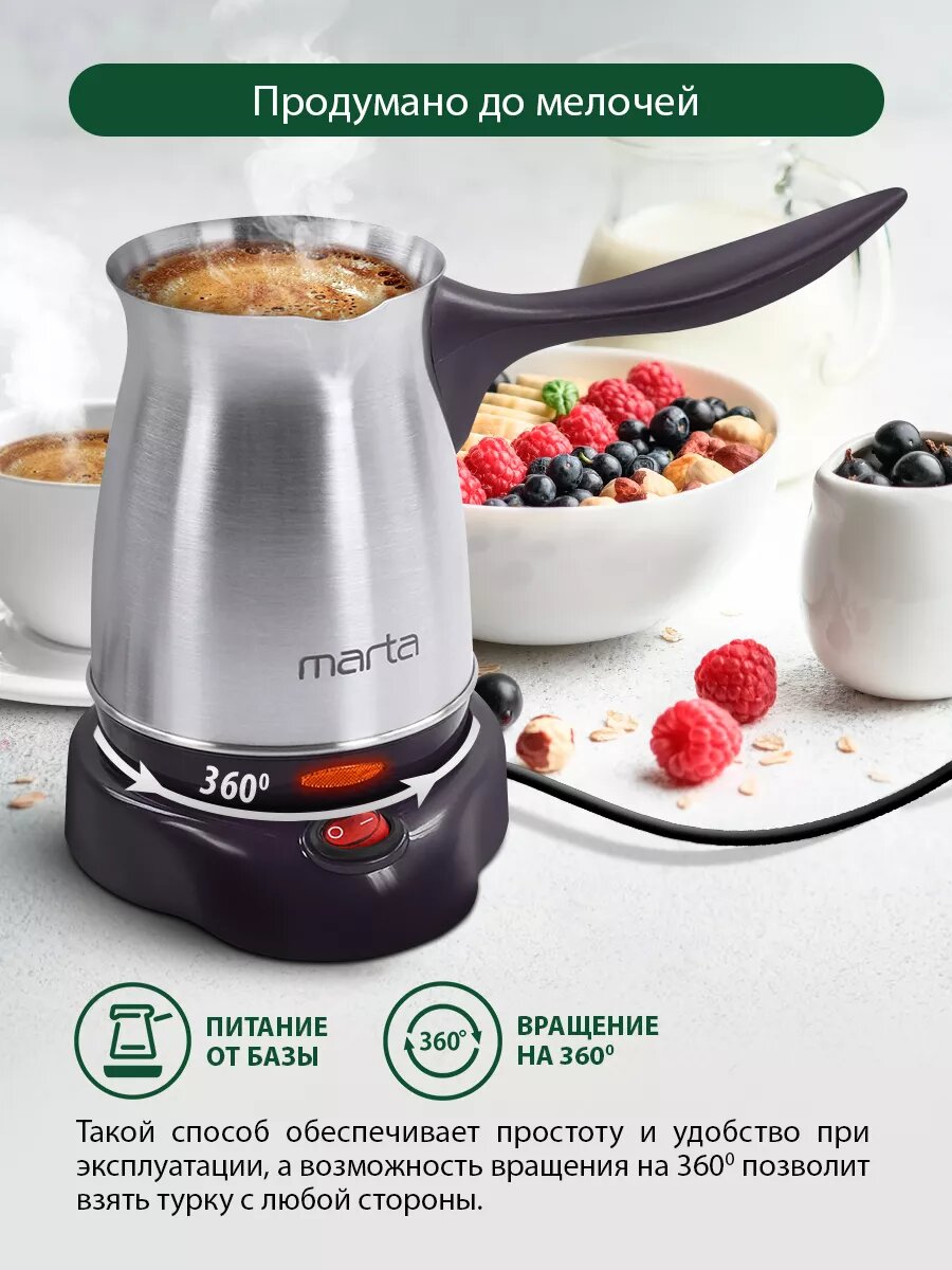 Электрическая турка MARTA MT-2143 бордовый гранат 400 Вт объем 500 мл корпус сталь съемная кр