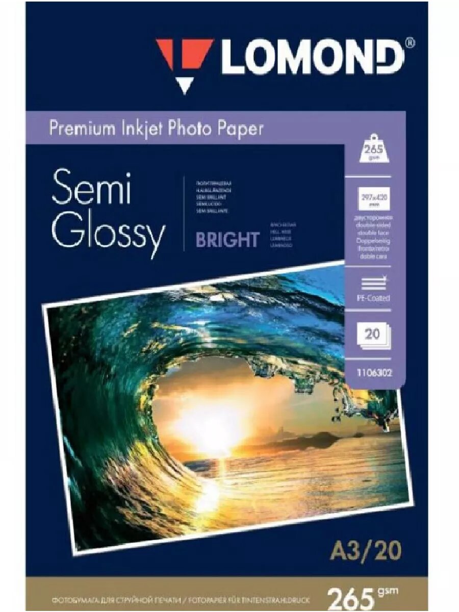 Купить Фотобумага Lomond 1106302 A3/265г/м2/20л./белый полуглянцевое/полуглянцевое для струйной печати