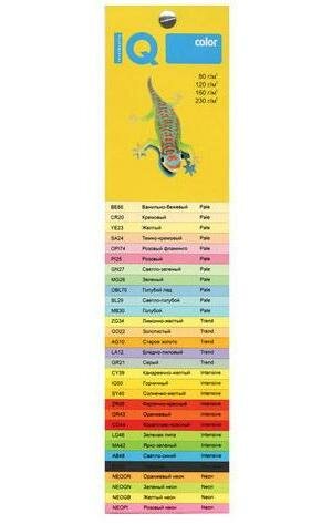 Бумага цветная IQ COLOR (А4,80г,4цв. GN/GB/OR/PI по 50л.) пачка 200л.