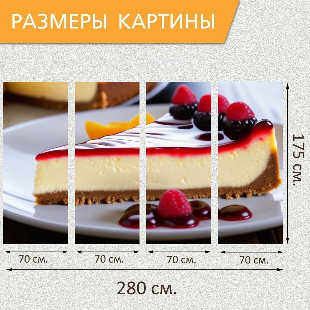 Купить Модульная картина на холсте в кафе "Классический чизкейк на столе , " триптих на подрамнике 280х175 см. для интерьера