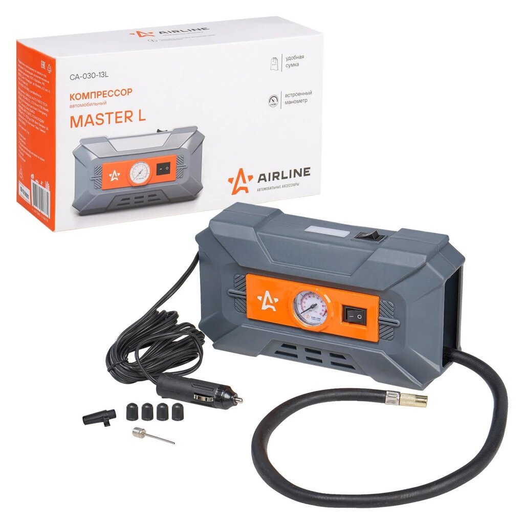 AIRLINE CA03013L Компрессор с фонарем 8Атм 30л/мин 6А шланг 0,7 м кабель 3 м 12В сумка AIRLINE MASTER L CA-030-13L