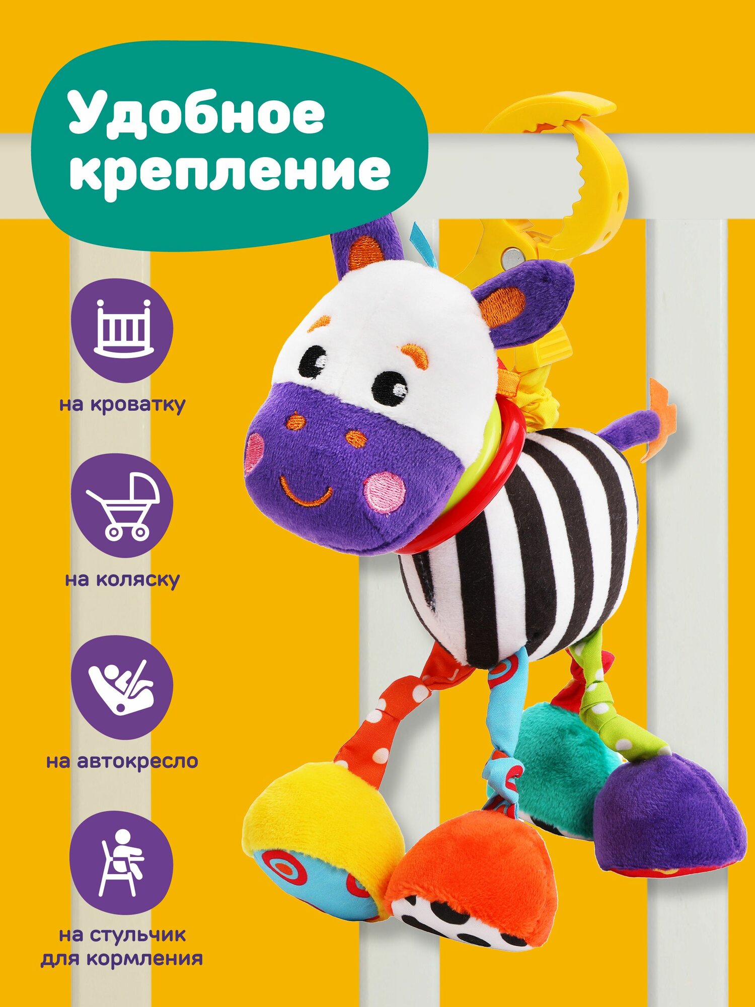 Подвеска погремушка на коляску для детей Зебра Жирафики