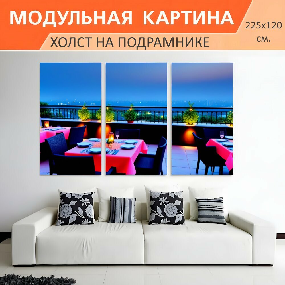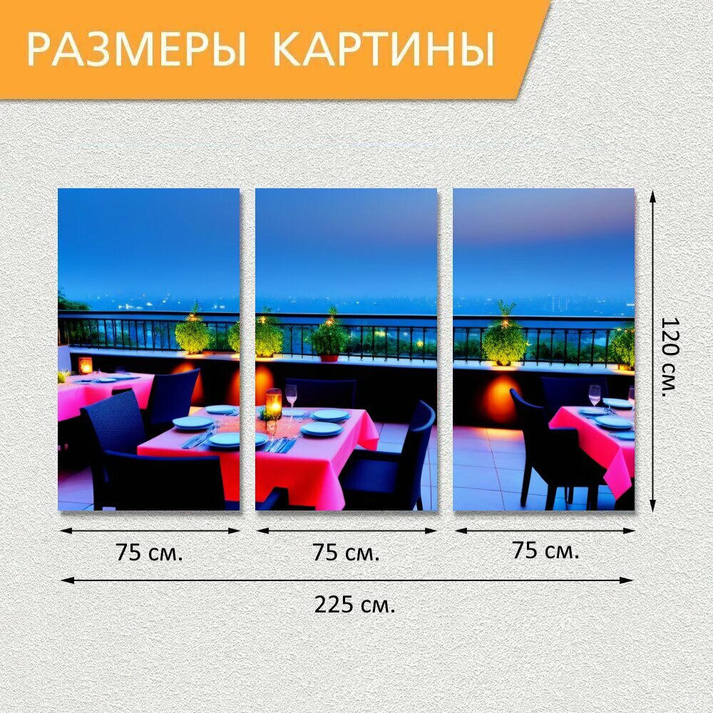 Модульная картина на холсте в кафе "Ужин на открытой веранде , " триптих на подрамнике 225х120 см. для интерьера интересное: