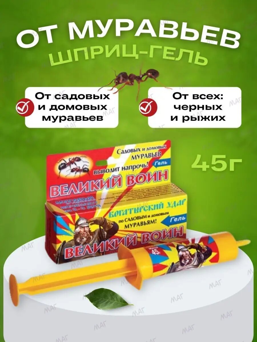 Средство отрава яд от Муравьев и Тараканов Великий Воин Гель шприц-дозатор 45 г