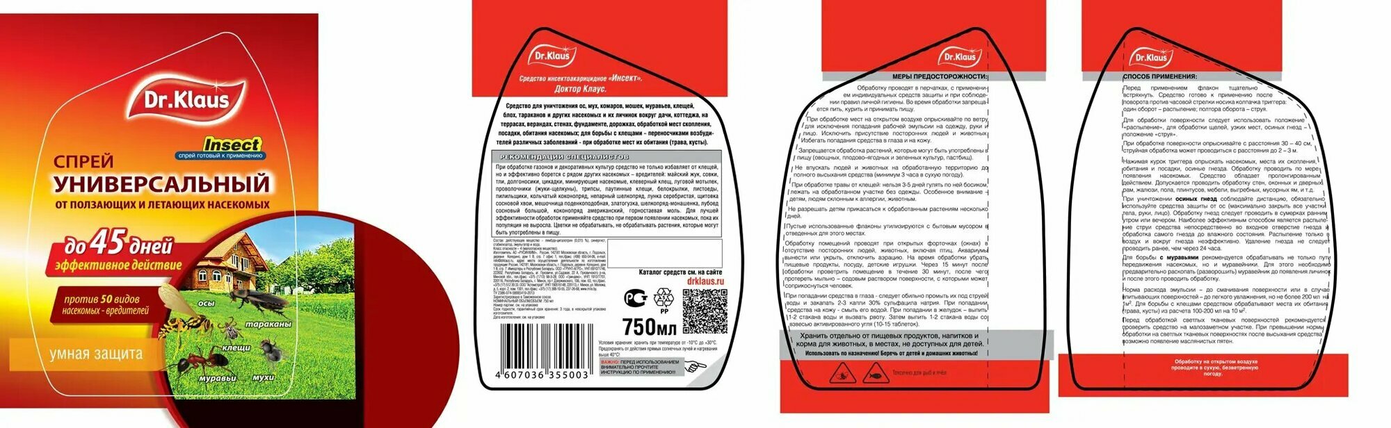 Dr.Klaus Спрей Универсальный от летающих и ползающих насекомых, флакон 750 мл