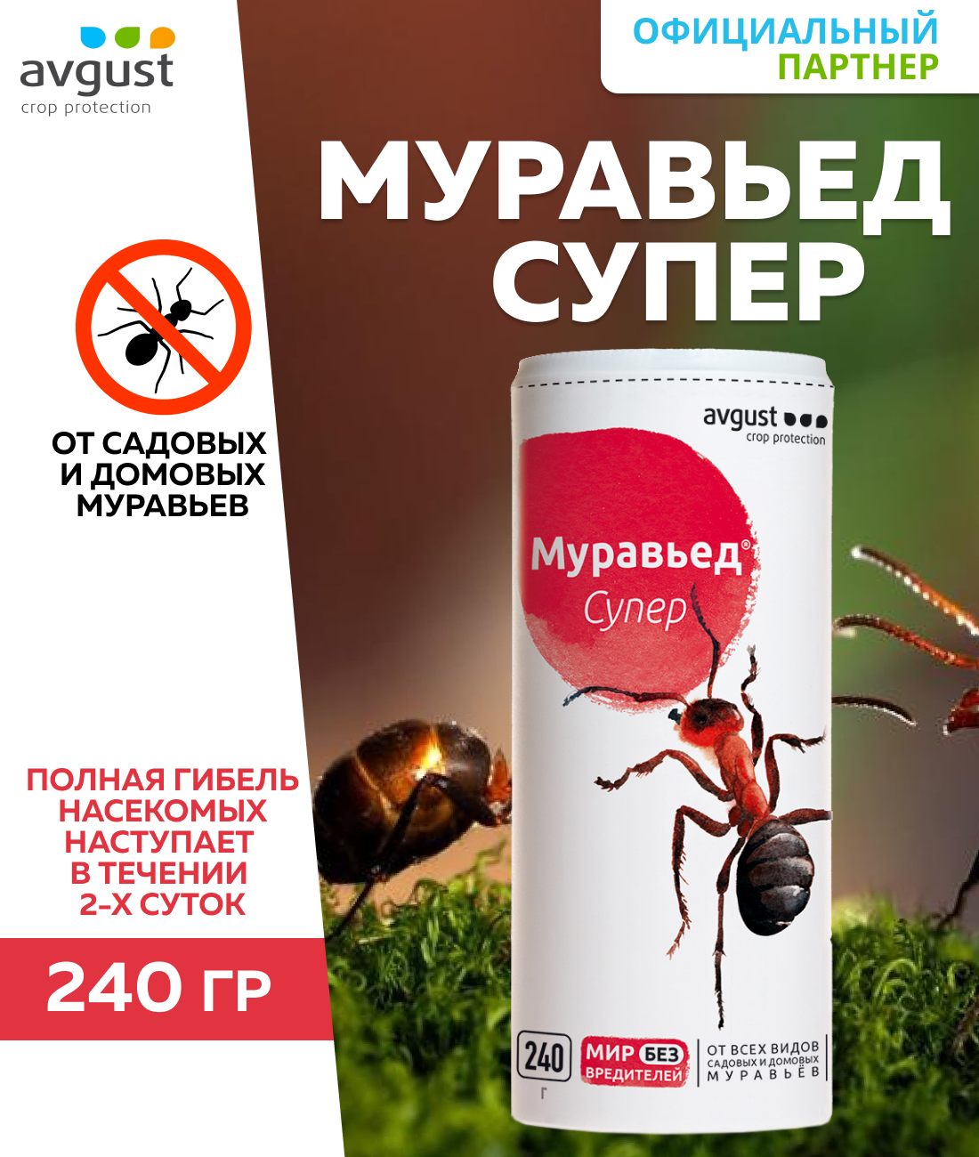 Средство против садовых и домовых муравьев AVGUST Муравьед Супер, 2 шт по 240 г (480 г)