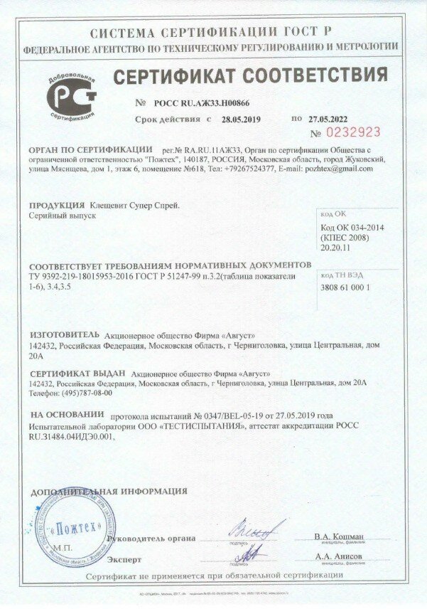 Спрей avgust Клещевит Супер для обработки одежды, 103 г, 100 мл, 15 ночей, белый
