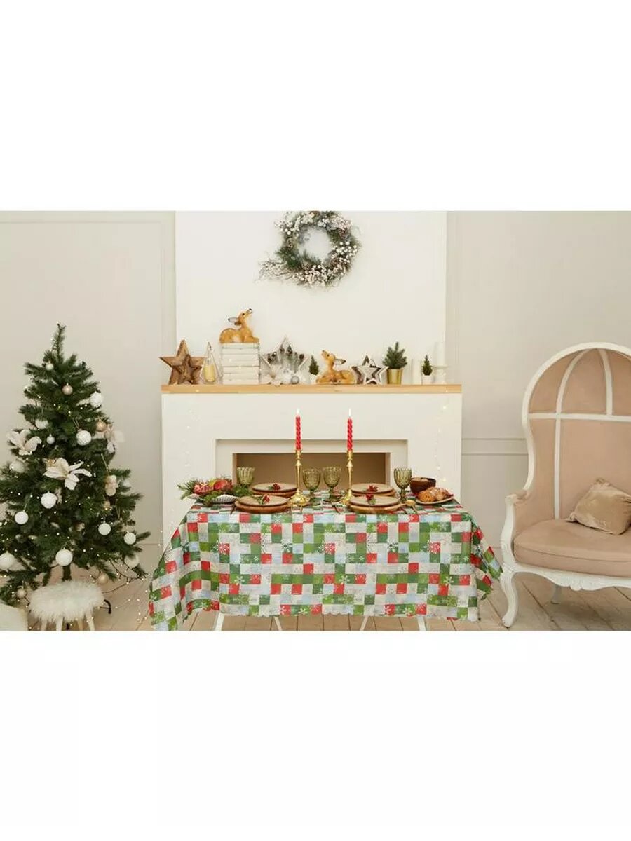 Скатерть новогодняя "Новогодняя мозаика" 145*220 +/- 2 см, 100% п/э