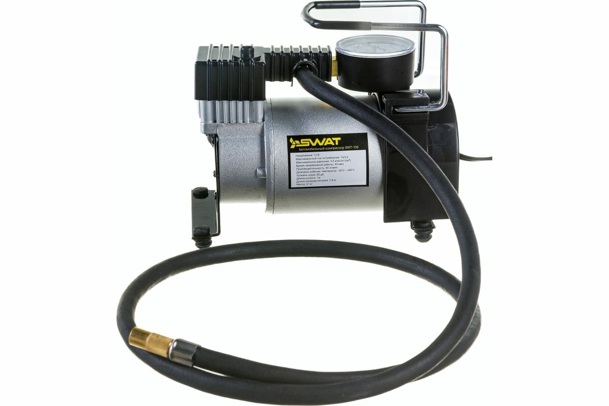 Компрессор автомобильный Swat SWT-106 черный/серебристый
