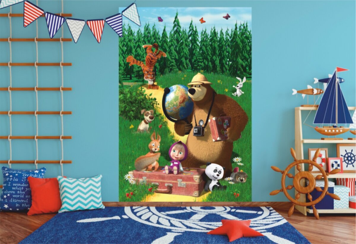 СохранитьФотообои детские "Маша и Медведь" бумажные в детскую на стену Большое путешествие 200*140 см. (4 листа) интересное: