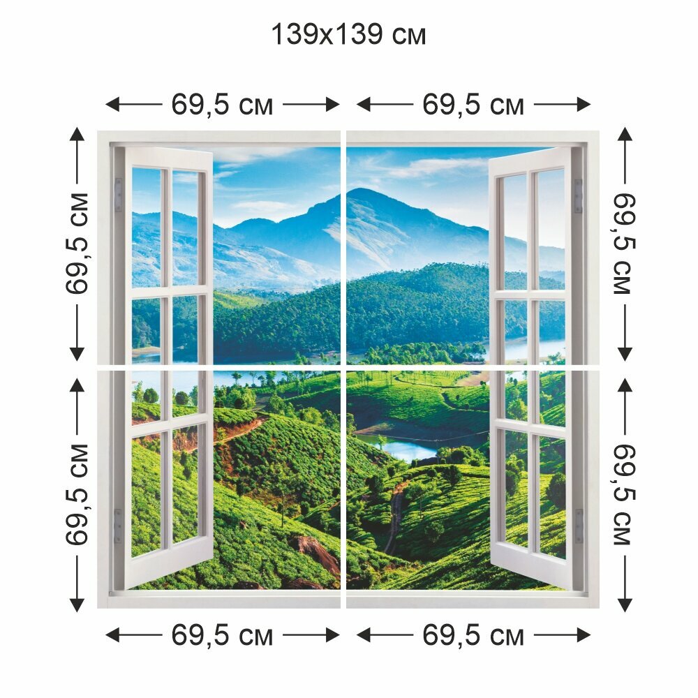Фотообои бумажные BELLISSIMO "Вид из окна" 139*139 см (4 листа)