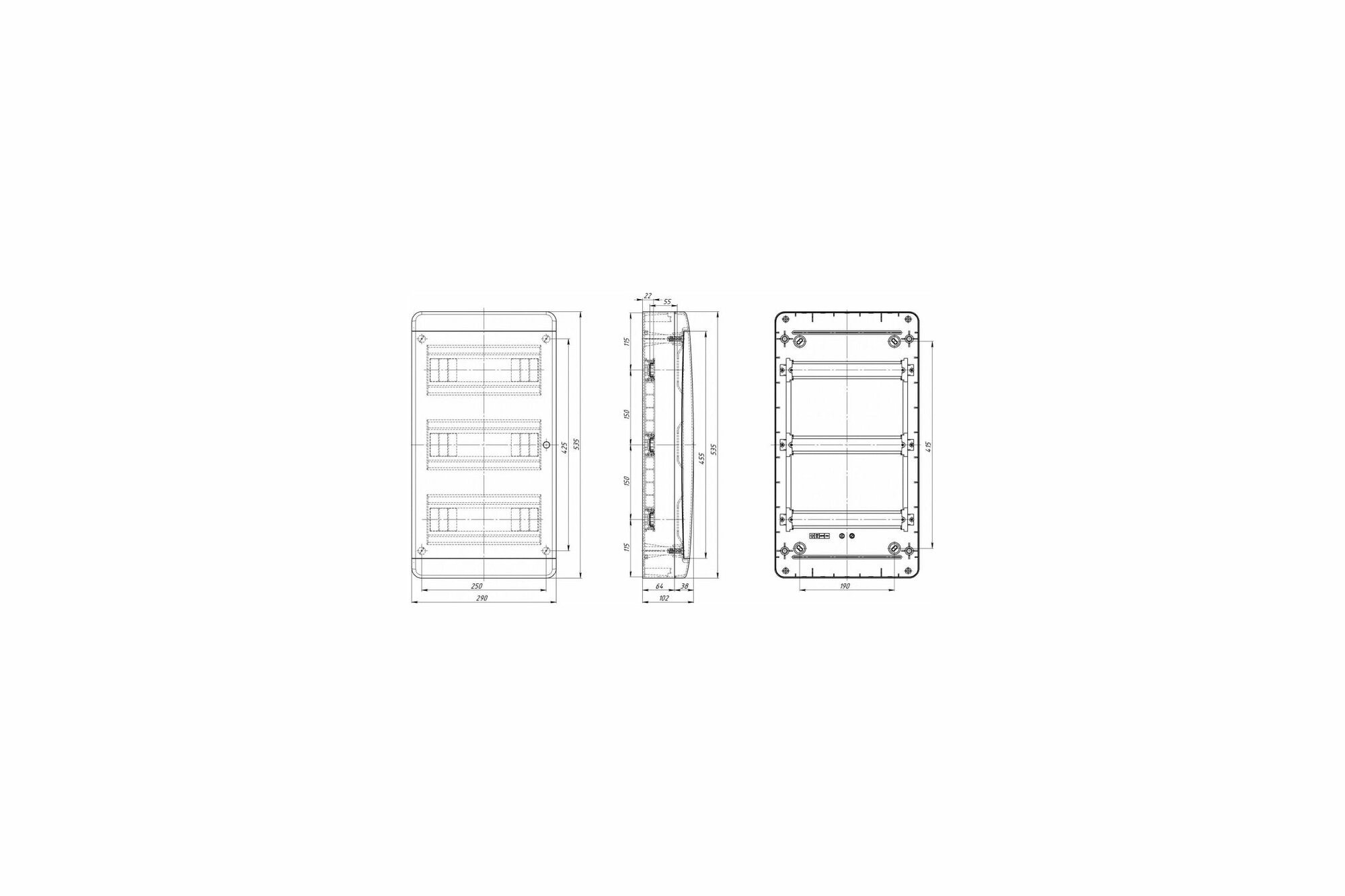 На фото без лицевой панели изображен встраиваемый щит. Фото накладного не нашел, но они идентичны. |