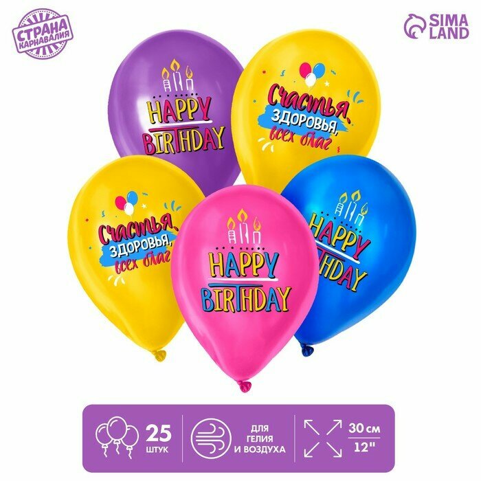 Купить Воздушный шар латексный 12" «С днём рождения», свечки, 25 шт.
