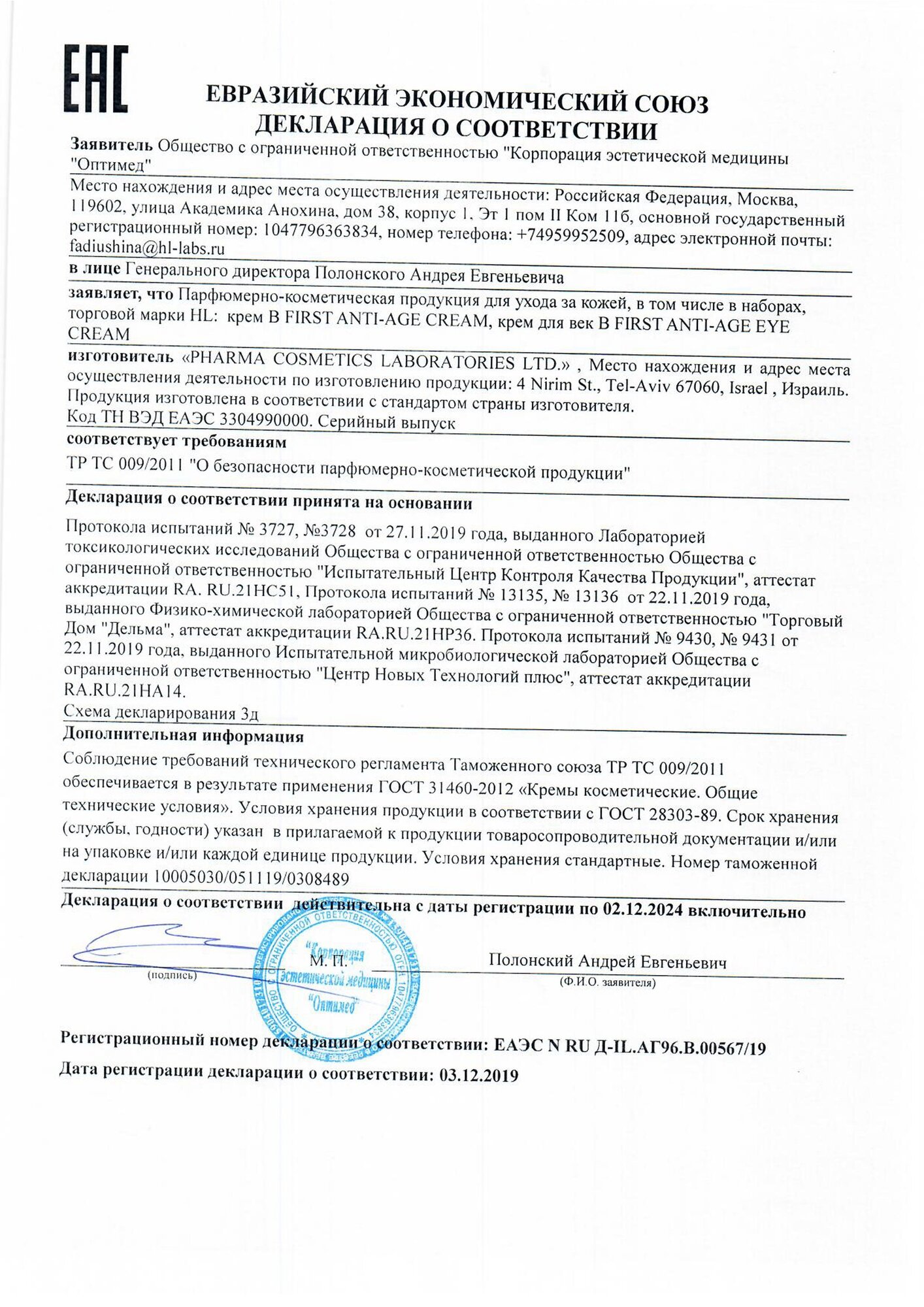 Holy land B FIRST ANTI-AGE EYE CREAM (крем для век 30 мл)