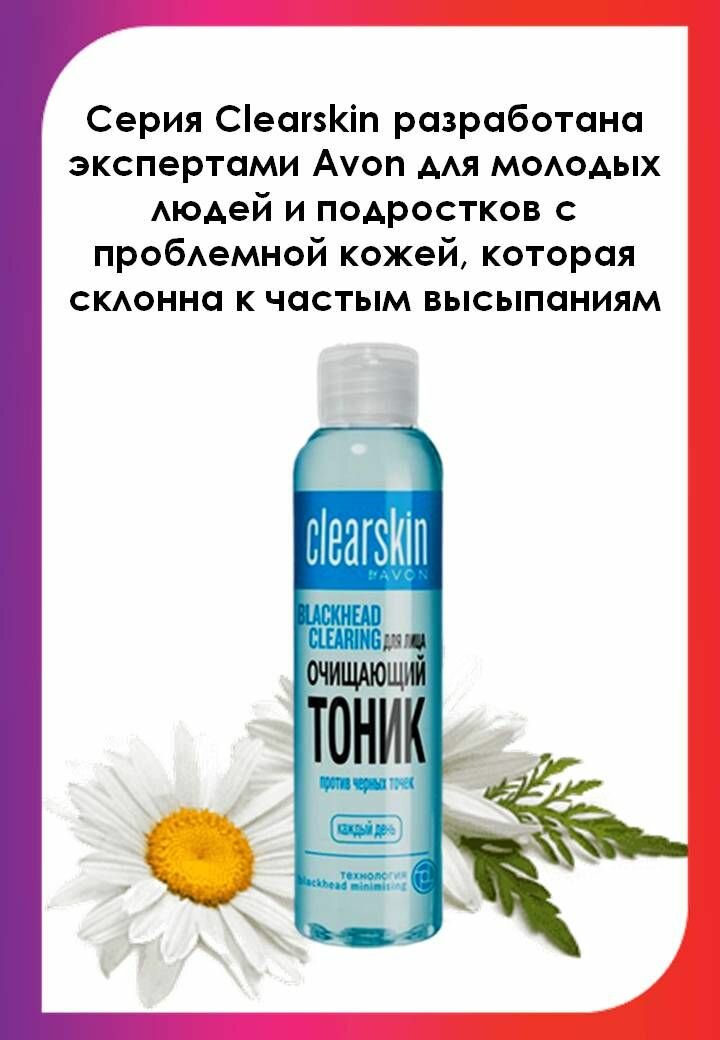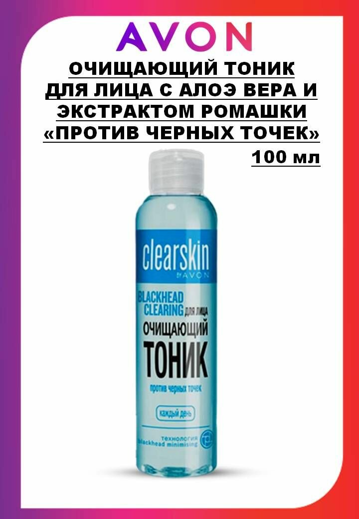 AVON Clearskin Тоник очищающий с алоэ вера и экстрактом ромашки Против черных точек, 100 мл