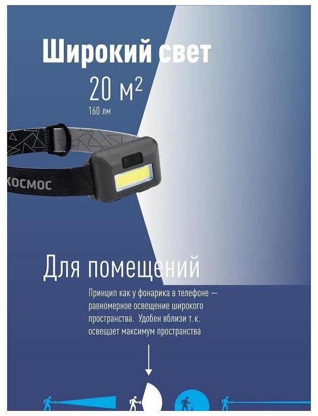 Космос Фонарь светодиодный налобный компактный 3Вт COB космос KOC-H101-COB