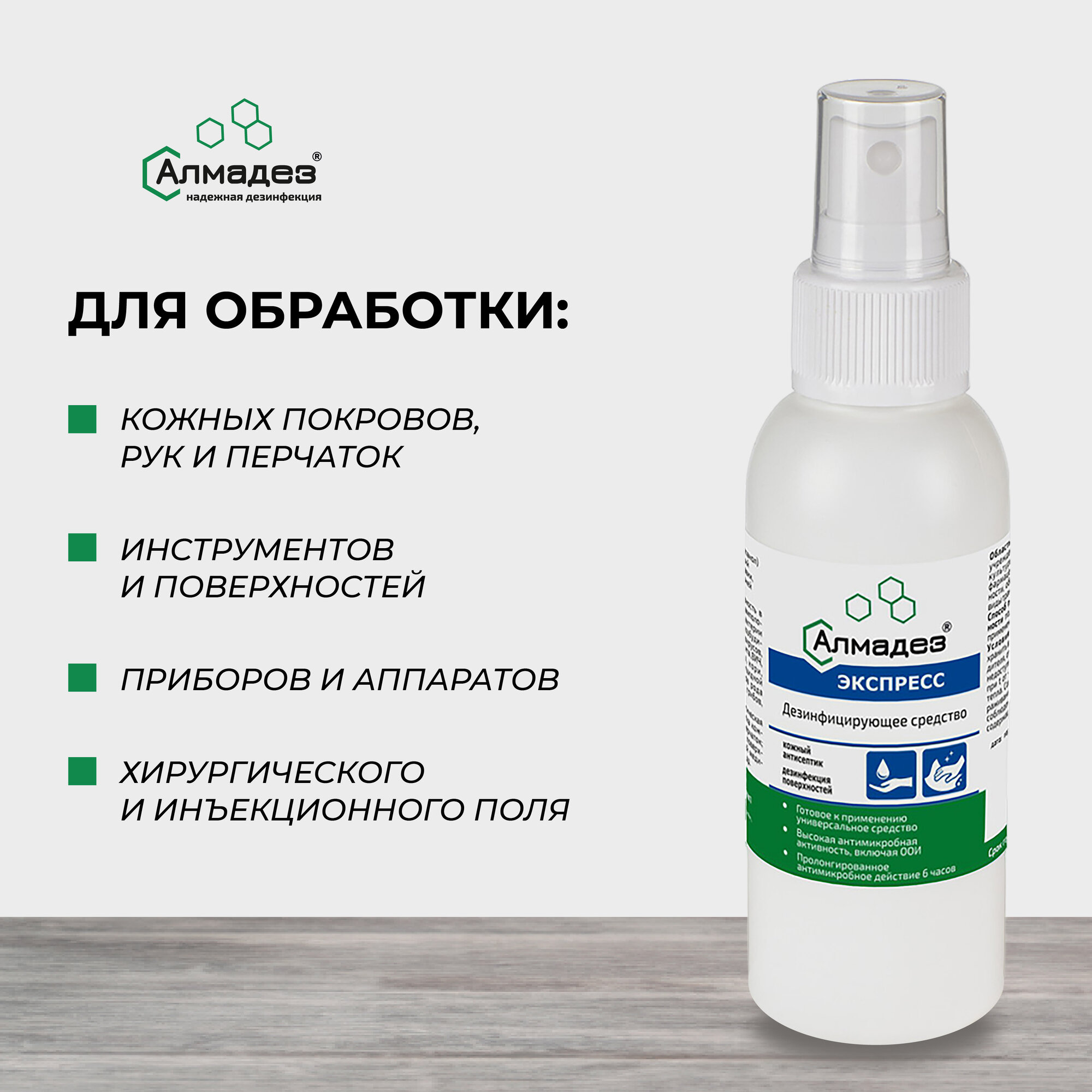 Антисептик для рук алмадез алмадез-экспресс, 100 мл, с распылителем, кожный дезинфицирующий спиртосодержащий (63%), готовый раствор, АЭ-501