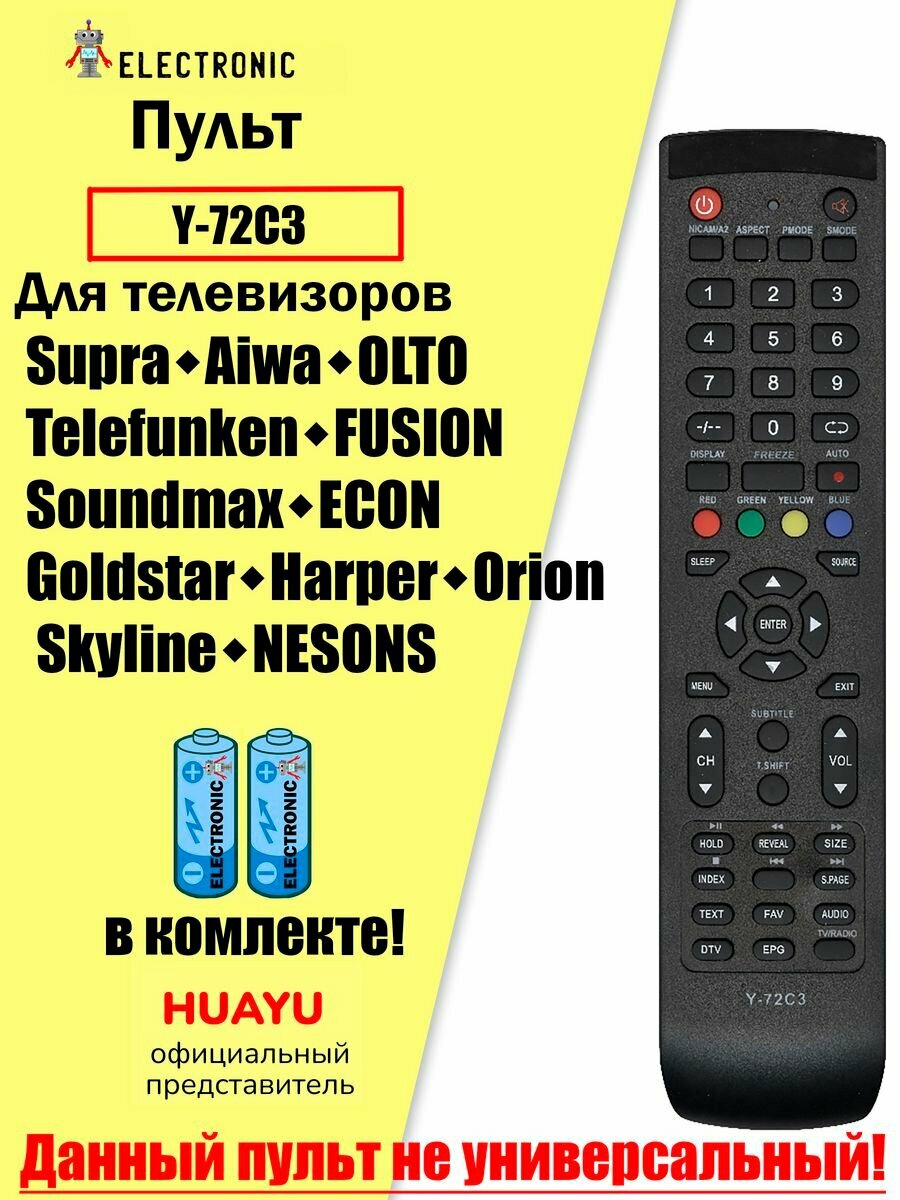 Пульт Y-72C3 для SUPRA, harper/fusion /OLTO, gold star, TELEFUNKEN, aiwa