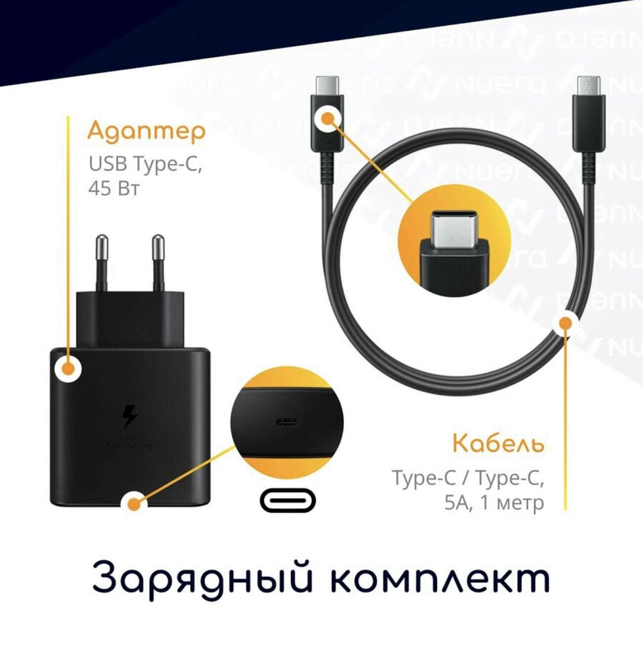 Сетевое зарядное устройство Samsung EP-TA845XBEGCN + кабель USB-C Type-C, 45 Вт, черный