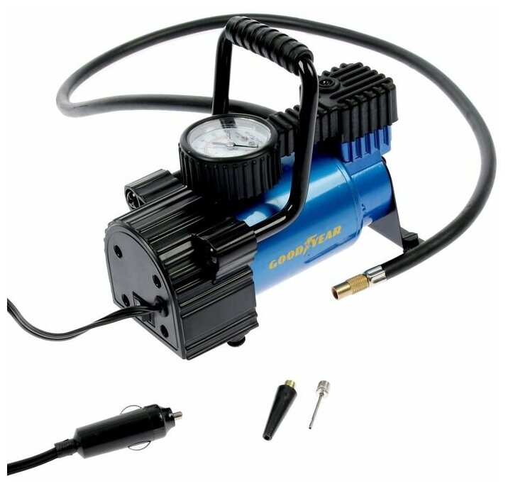 Компрессор автомобильный питание - прикуриватель, манометр, насадки, 12 v, 7 атм, 35 л/мин, сумка в комплекте Goodyear GY000102