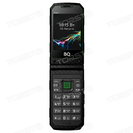 Сотовый телефон BQ BQ-2822 Dragon черный+зеленый (2sim/2.8"/320*240/32Mb/microSD/0.3МП/Bt/2000мАч/раскладушка)