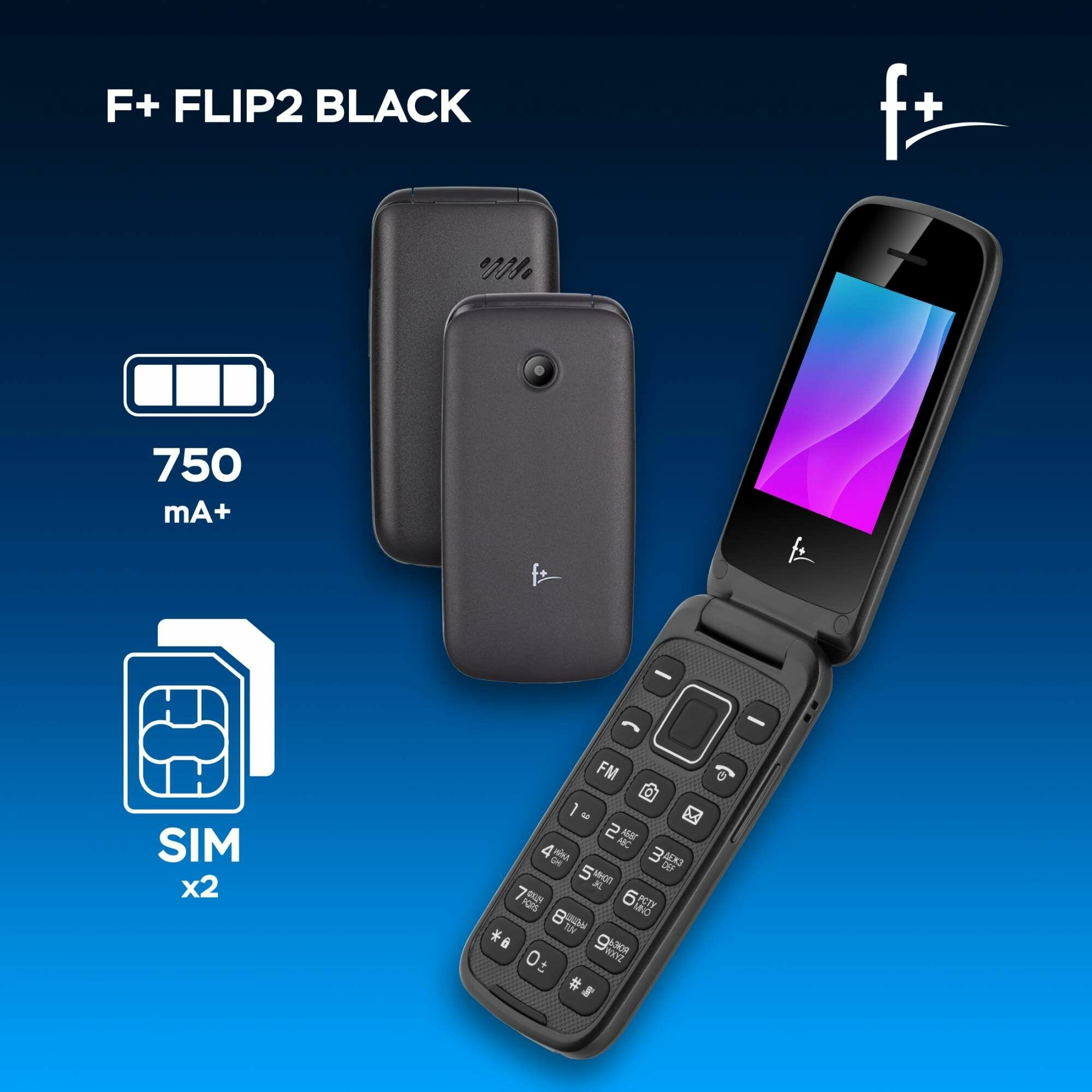 Мобильный телефон F+ Flip2 2.4", 750 мА·ч, micro-USB, черный (Flip2 Black)