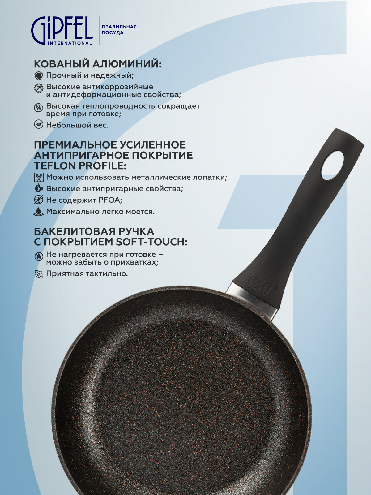 Алюминиевая сковорода Gipfel Buffalo 0110 24 см черный интересное: