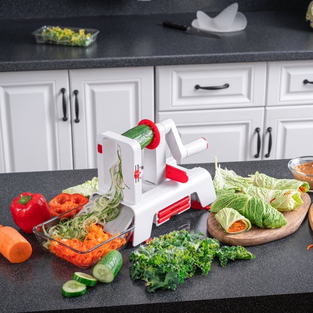 | Отзыв: | Я в восторге от спиралерезки. Она очень экономит время. Большой кабачок можно нарезать тонкими лентами за минуту. Милые кудряшки из овощей украсят любое блюдо. Готовлю с ее помощью регулярно. |