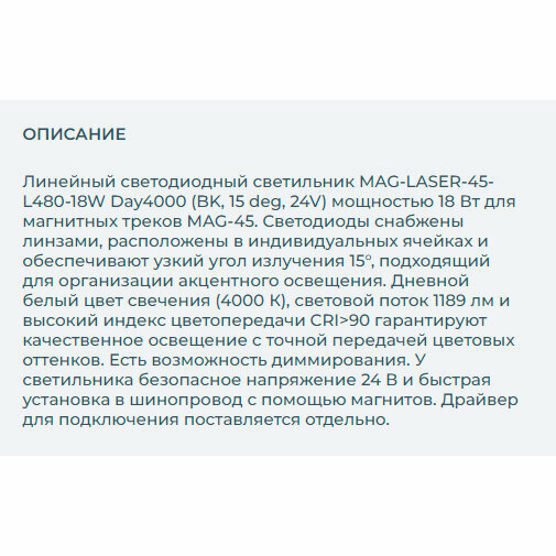 Светильник MAG-LASER-45-L480-18W Day4000 (BK, 15 deg, 24V) (Arlight, IP20 Металл, 3 года)